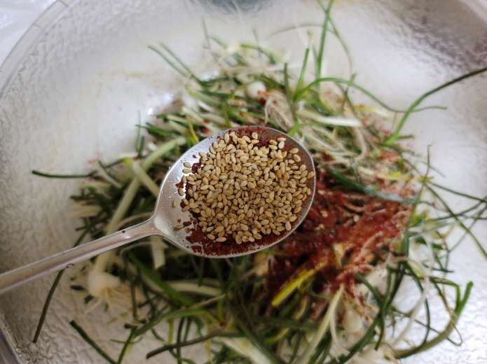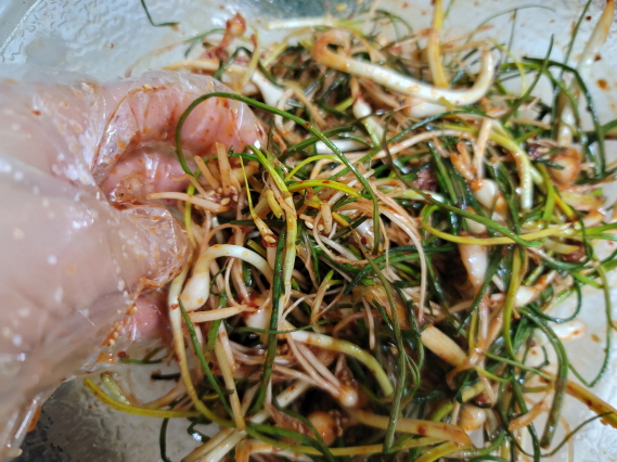 풋내가 나지 않도록 살살 무쳐줍니다.