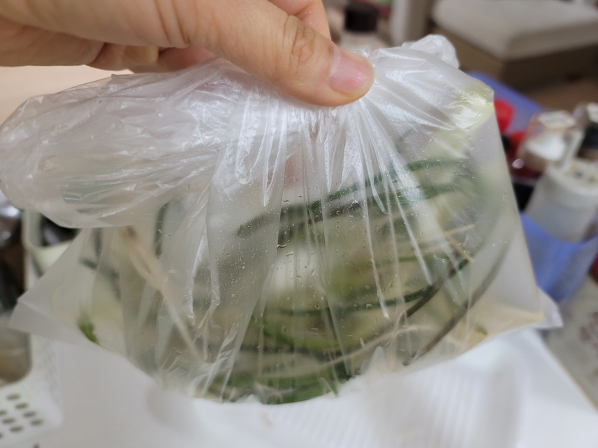 물기가 약간 있는 채로 비닐에 넣어놨다가