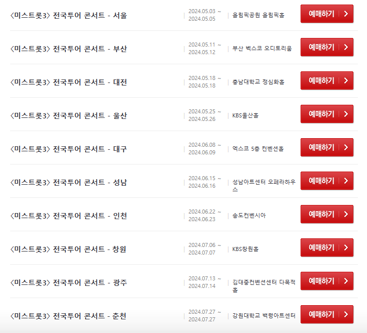미스트롯3 콘서트 대전일정