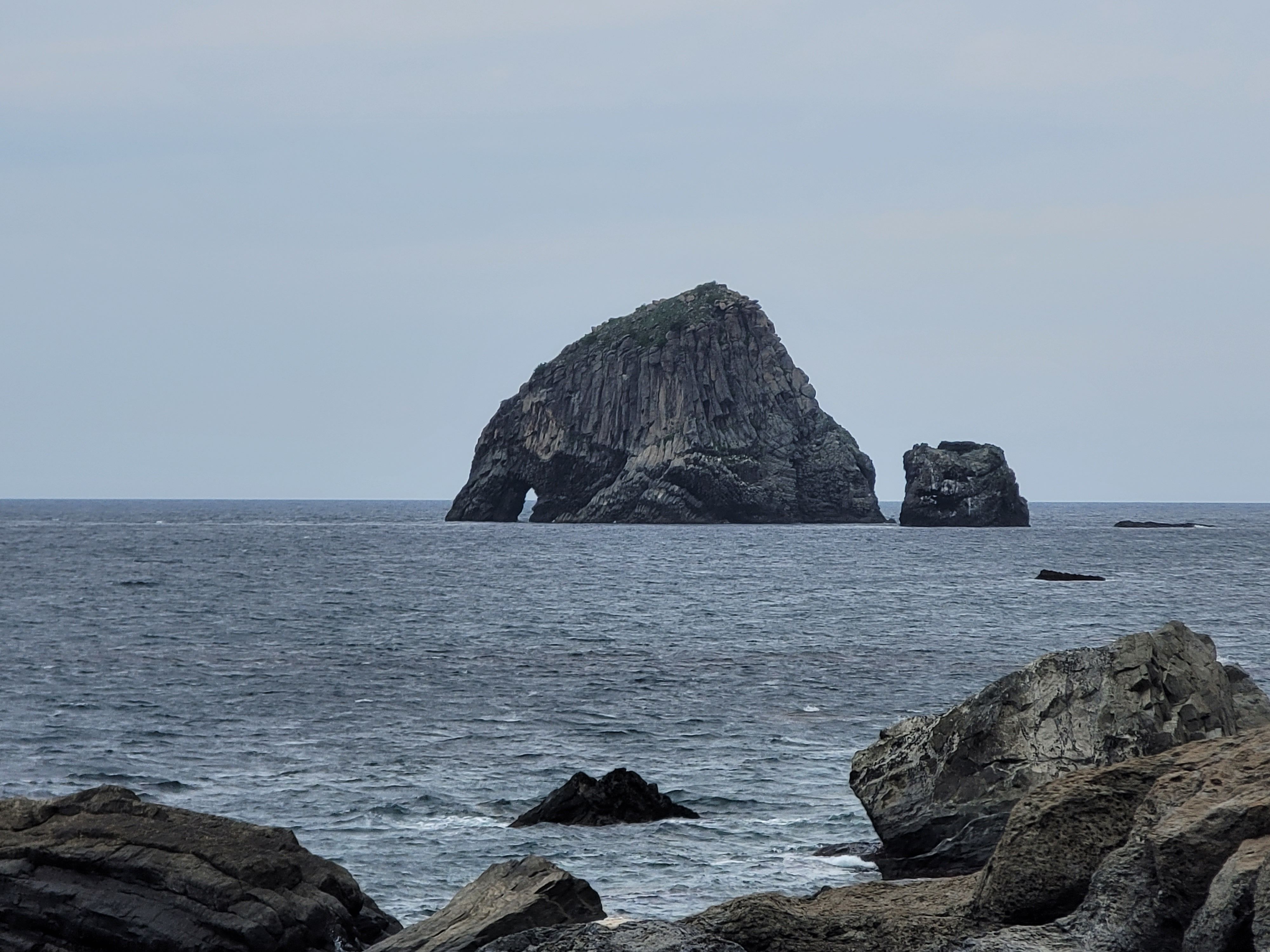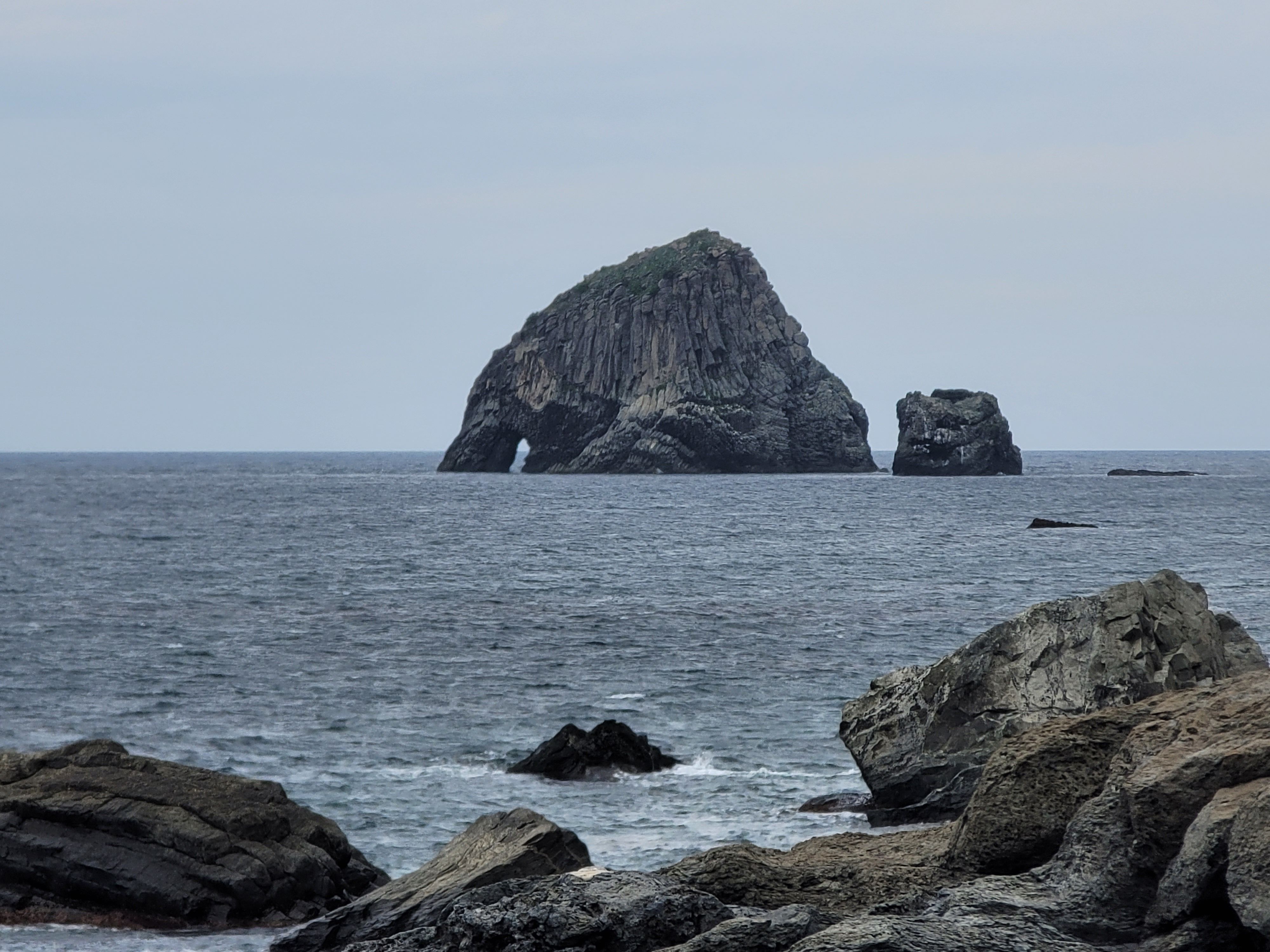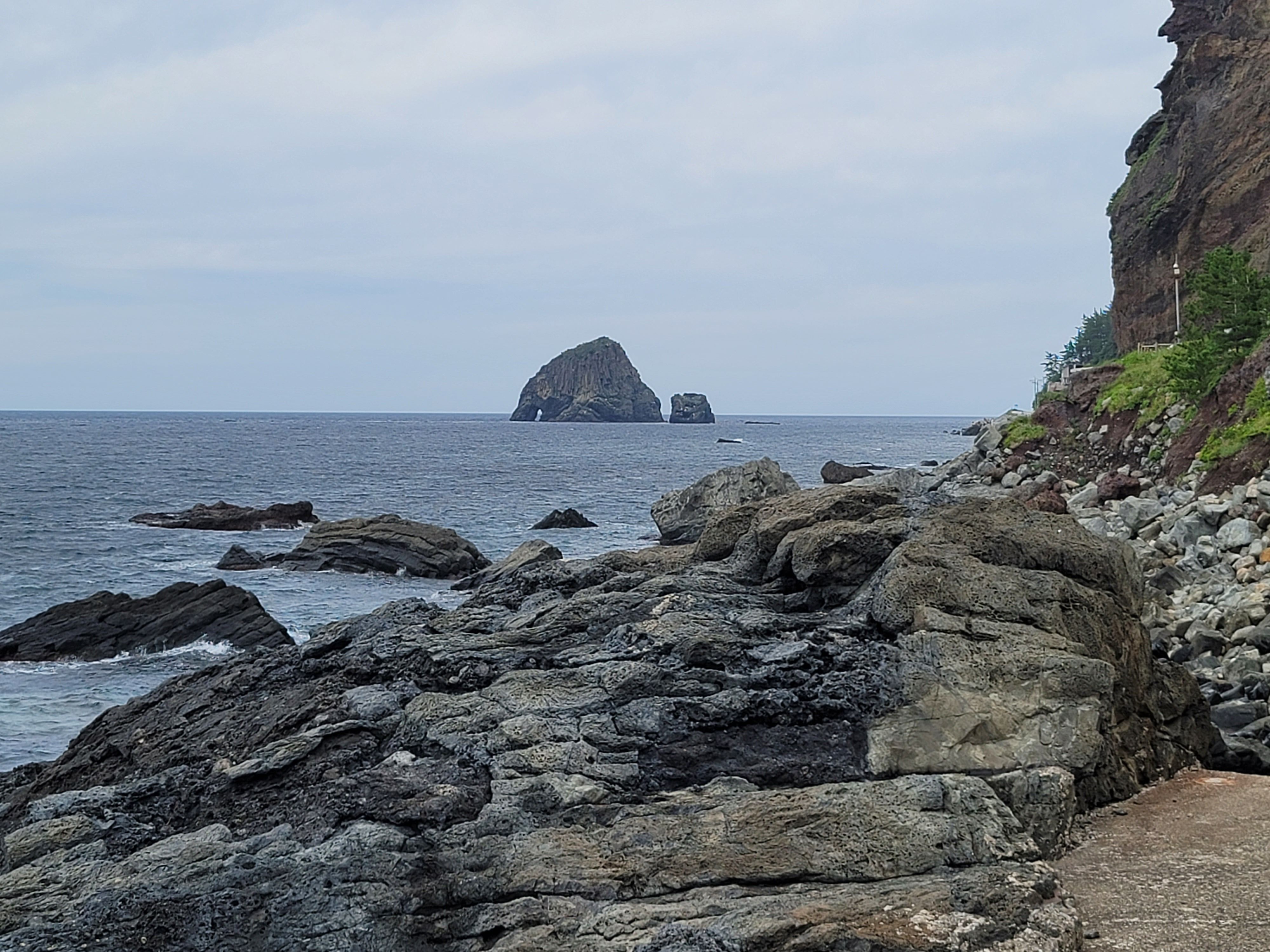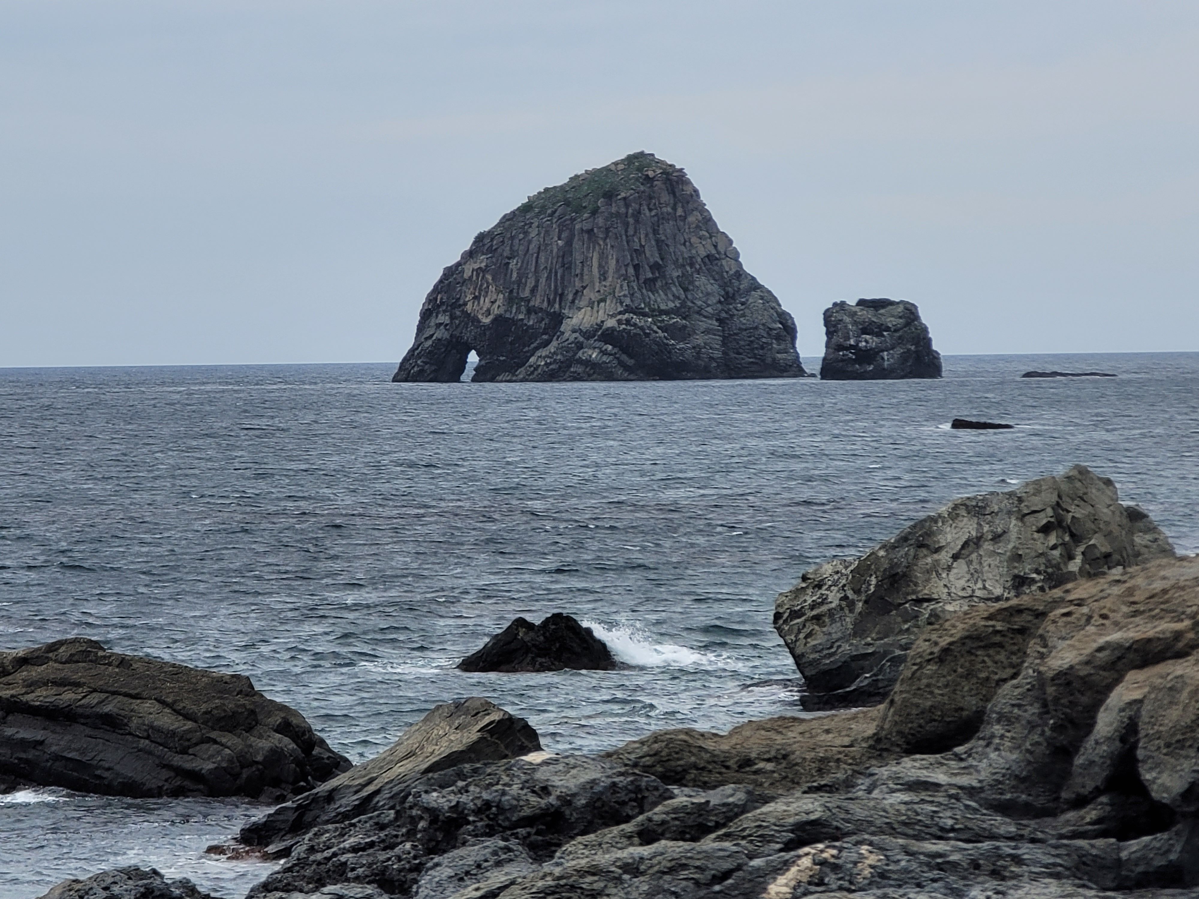 울릉도 사람들은 이 바위를 코끼리 똥바위라고 하는데 이 바위는 보는 각도에 따라 코끼리똥처럼 보이기도 하고 보이지 않기도 합니다.