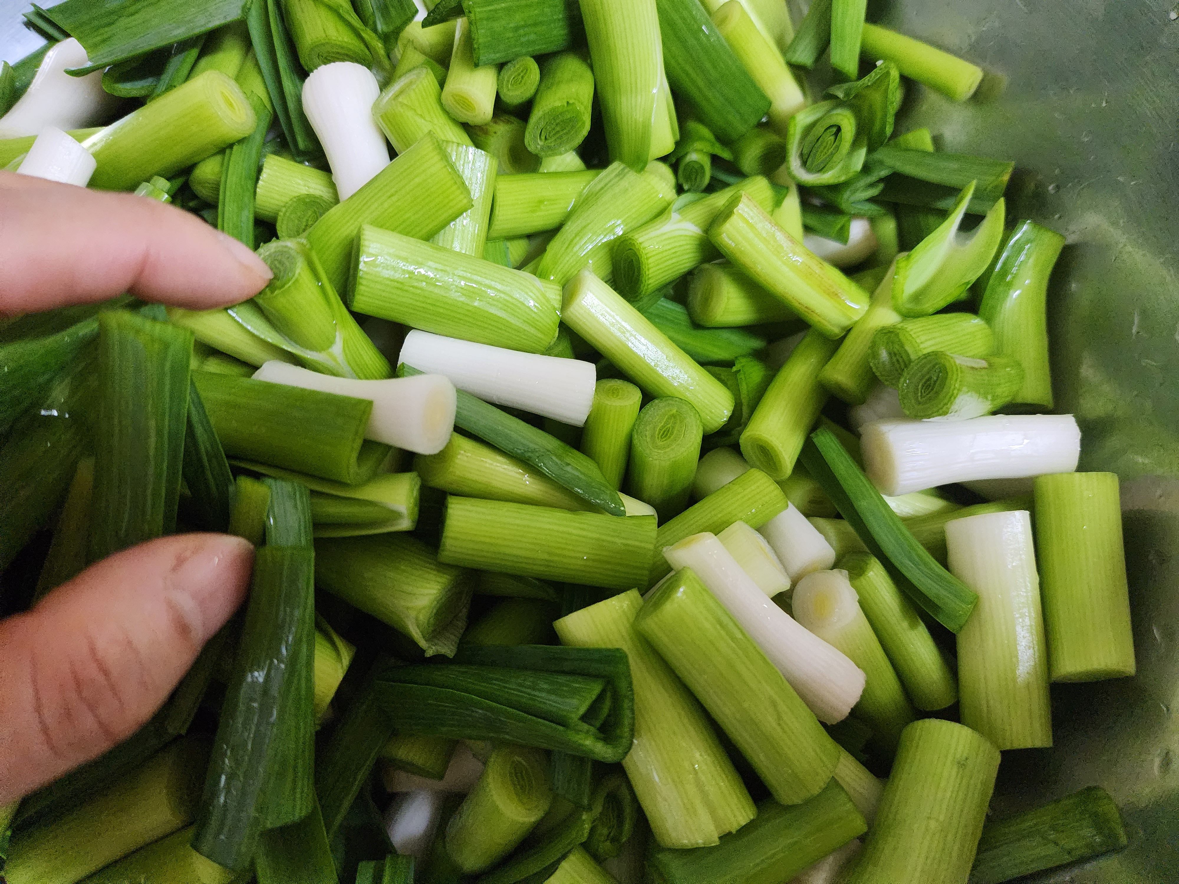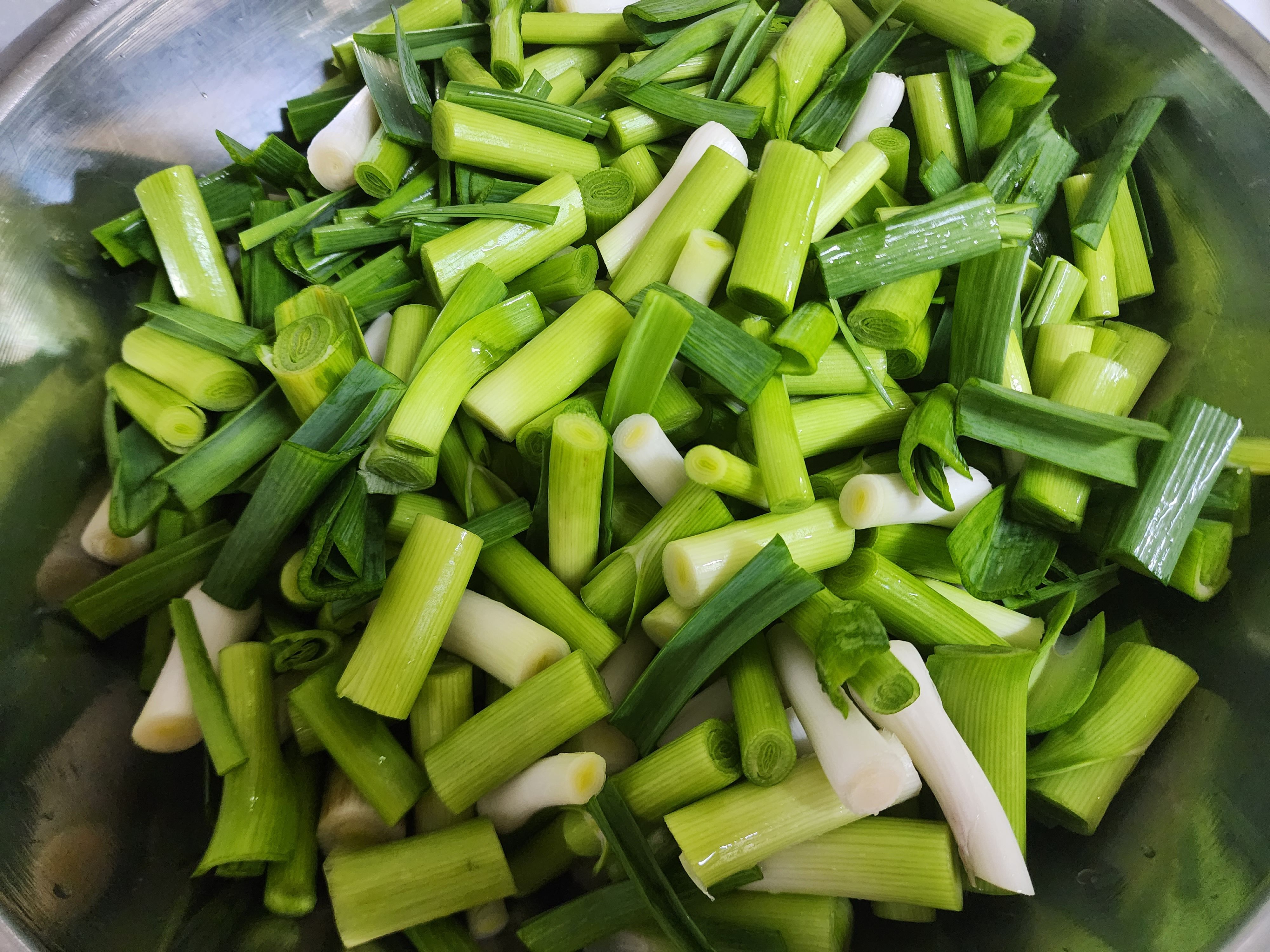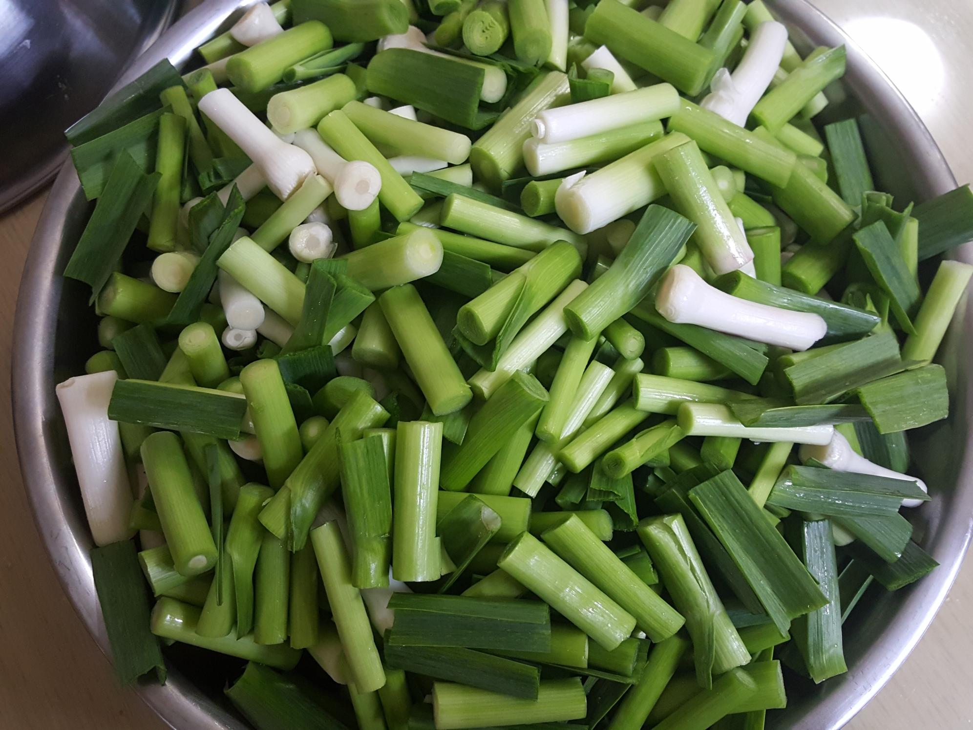 손질한 풋마늘대는 흐르는 물에 씻어주는데